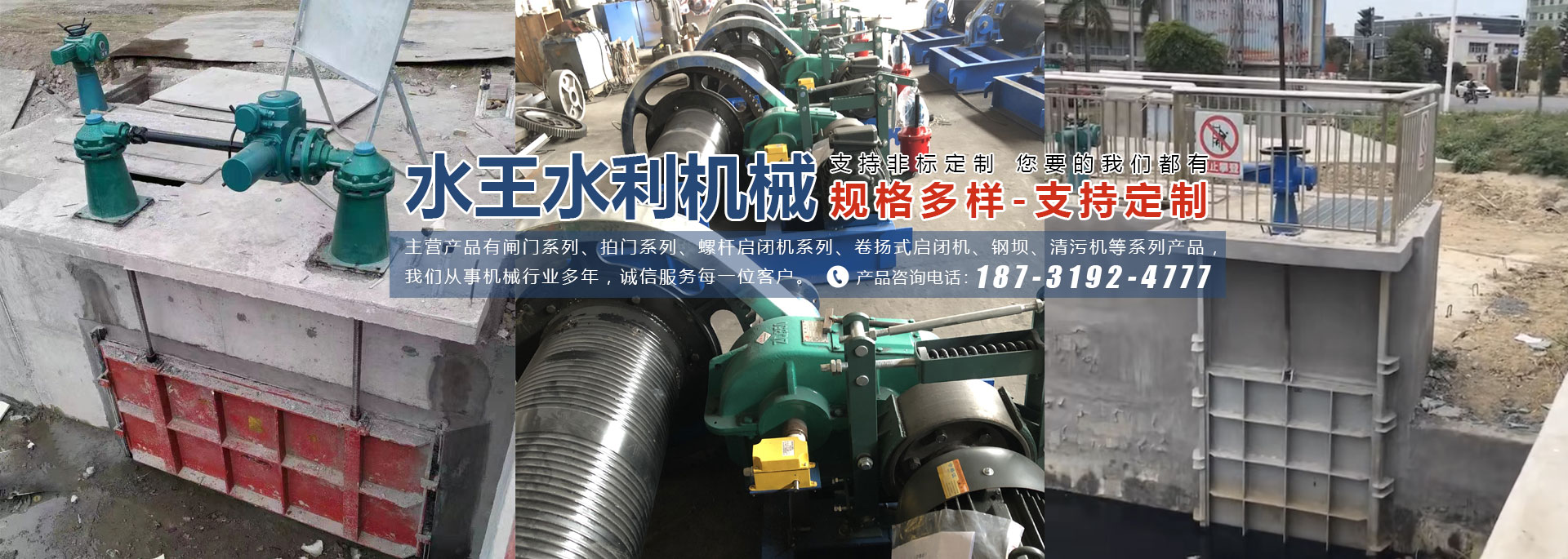 河北水王水利機械有限公司專業生產銷售鑄鐵閘門、啟閉機、閘門、固定卷揚啟閉機、移動卷揚啟閉機、電裝啟閉機、鑄鐵鑲銅閘門、鋼制閘門、翻板閘門、不銹鋼閘門、景觀壩、鋼壩、液壓翻板閘門、鑄鐵拍門、鋼制拍門等各種材質拍門、橡膠止水的專業制造、生產及指導安裝的綜合性廠家,具有現代化管理模式,產品結構合理,性能可靠,確保向客戶提供高質量的產品和周到的售后服務,是制造、銷售、安裝一體化的規模型水利工程機械生產企業。 主導產品: 1、螺桿式啟閉···